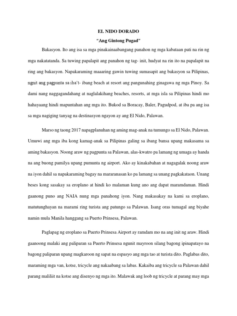 Ngunit ito ay nag dulot ng pag ka sira ng mga Corals at pag konti ng populasyon. Lakbay Sanaysay Pdf Ano ang lakbay sanaysay. Sikat ang lugar na ito dahil sa taglay nitong mga magagandang isla.