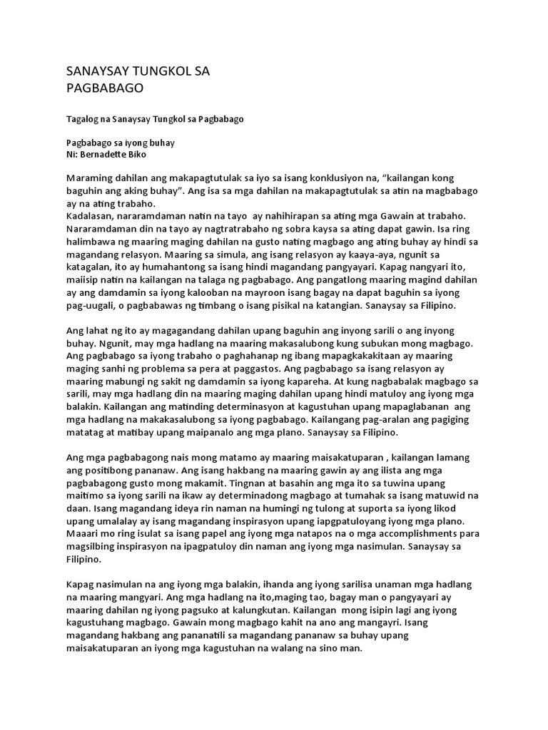 Sanaysay Tungkol Sa Pagbabago Pdf