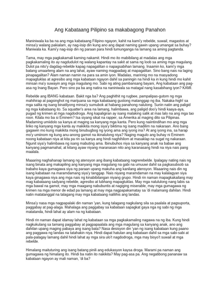 Ang Kabataang Pilipino Sa Makabagong Panahon Pdf